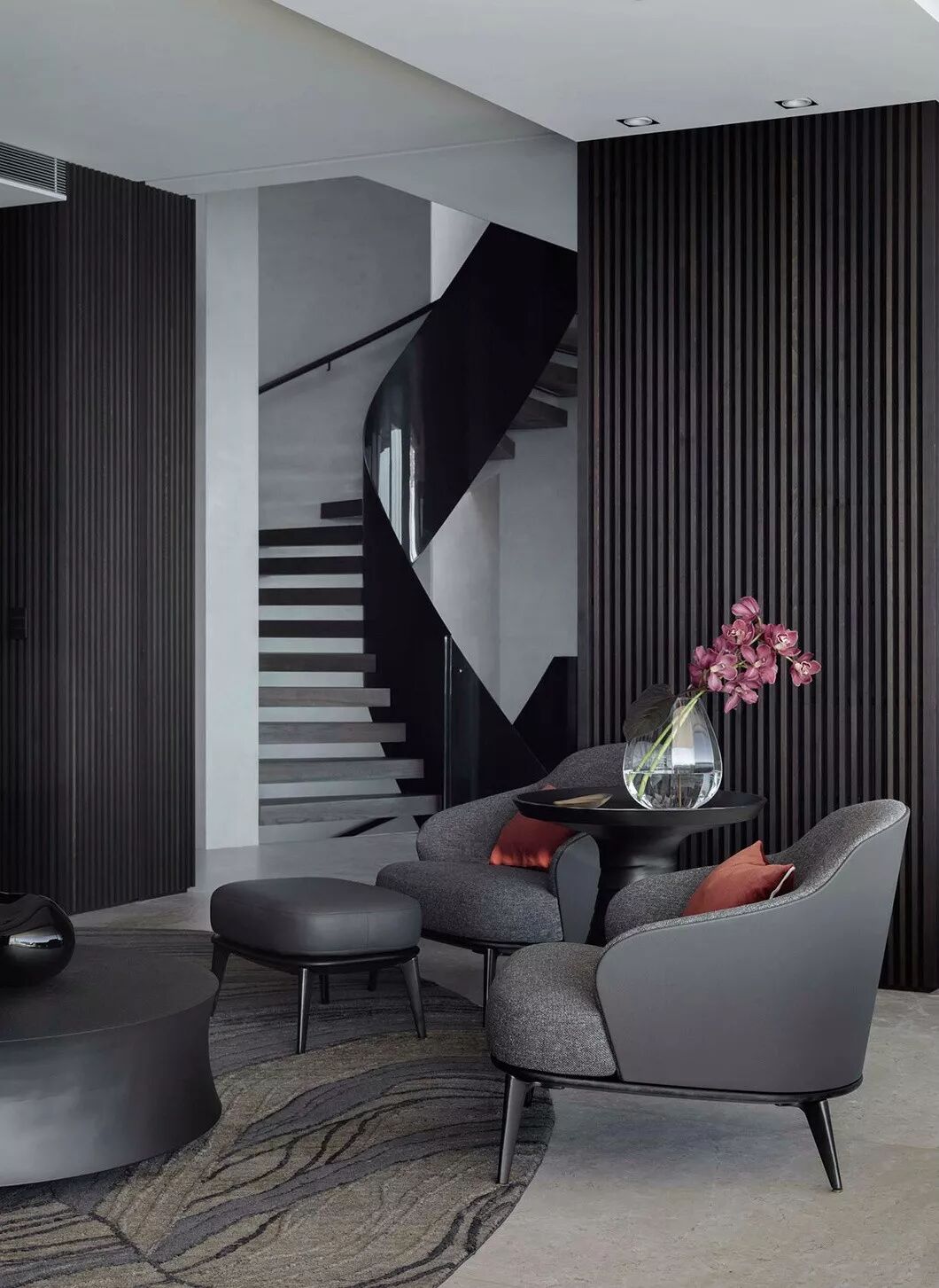 它靠近水面,西北偏西和敞开的外墙使室内充满光线,为对比和休息区提供了机会。雕塑般的楼梯像一条丝带一样在三个层面上,为戏剧性的室内设置场景。